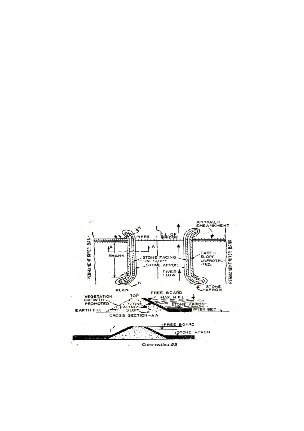of works, depending upon local conditions. General layout of guide banks, plan